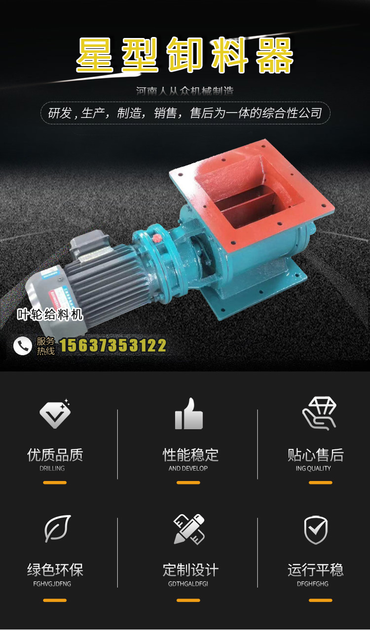 葉輪給料機其中的葉輪具有輸送功能,同時具有密封的作用,可有效防止氣力輸送過程中從排料口吸入空氣,同時還具有除塵的效果