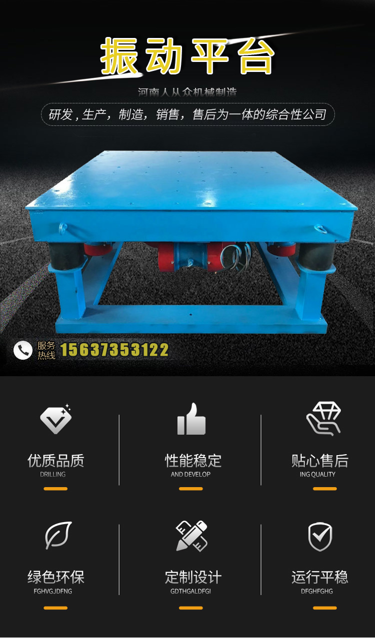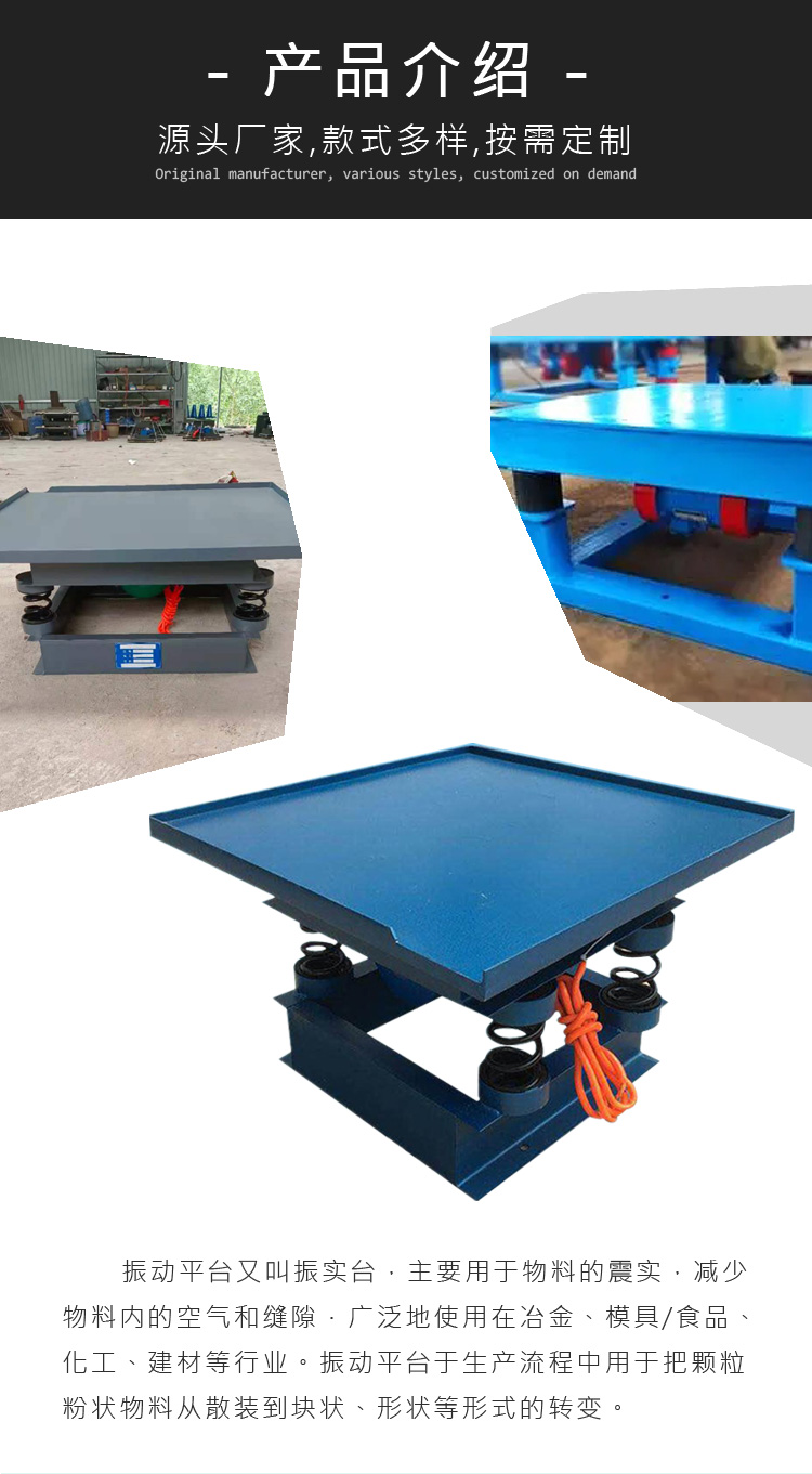 三維振動(dòng)平臺廣泛應(yīng)用于冶金、模具、建材等行業(yè),臺面高度可調(diào),上下左右前后三維立體振動(dòng),頻率可調(diào)、性能穩(wěn)定,操作簡單。