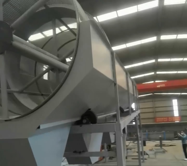 2、滾筒篩2000*11000mm 一臺(tái) 不銹鋼篩網(wǎng) 網(wǎng)孔分別為4*4mm 1500*4900mm 3片 1.5mm絲, 5*5mm 1500*4900mm 1片 1.5mm絲 , 10*10mm 1500*4900mm 2片 2.5mm絲, 25*25mm 1500*4900mm 1片 3mm絲, 帶收料倉厚3mm 帶支腿 物料最大塊40mm