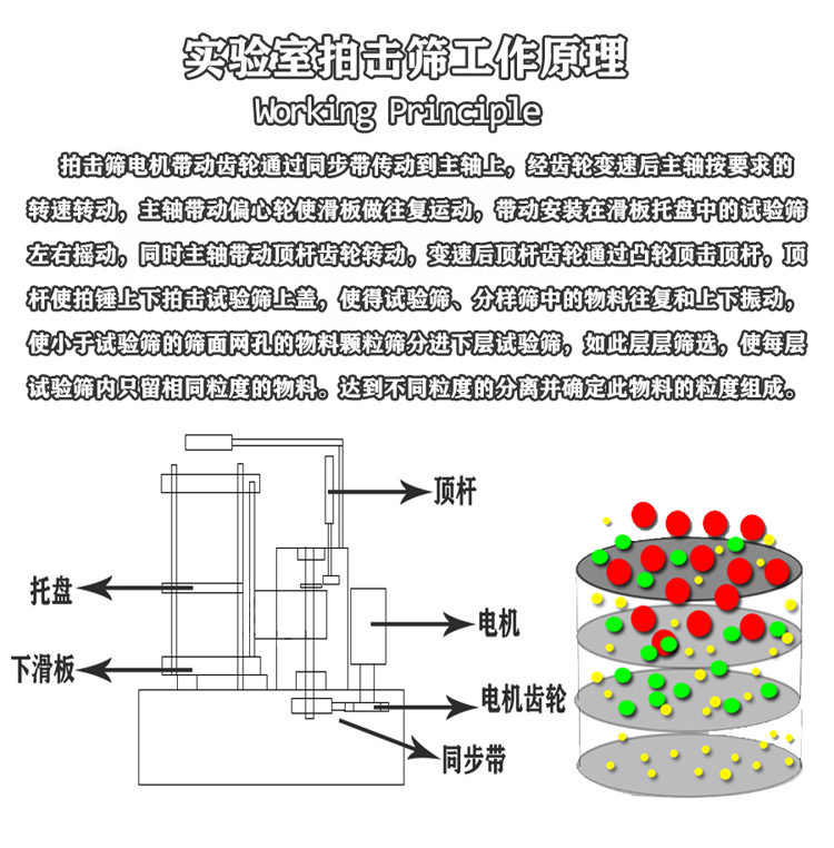 標準檢驗篩是一種實驗室篩選機,通常用于研究機構或大學實驗室的測試儀器。拍擊篩主要由底座、篩網和傳動裝置三部分組成。該振動篩還可以配備各種固定裝置,這些固定裝置靈活、牢固,并且可以自動停止。它不同于一般的振動篩,篩機和篩網有一定的標準限制。