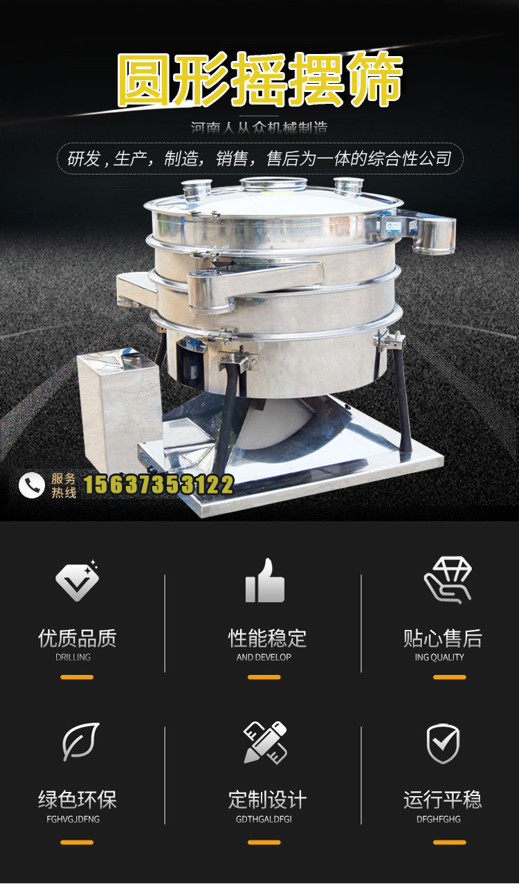 圓形工業過濾振動篩的仿人工設計極大程度上滿足了物料的高產、高效、高精度篩分需求,它是對原始篩分的機械模擬,相比普通旋振篩它有著高達幾倍的產量,篩分效率更是能達到90%以上,密閉除塵,操作安全。